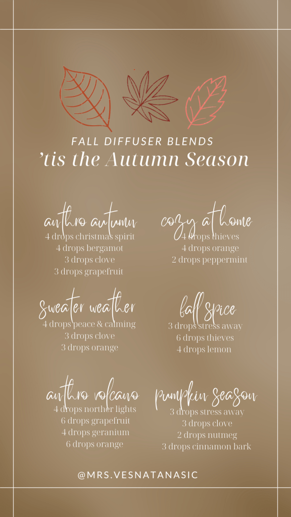 It is a happy oil and we use it all year long but I love it paired with Thieves in the Fall. It makes the house feel like Fall. It also helps to cleanse and refresh the air.