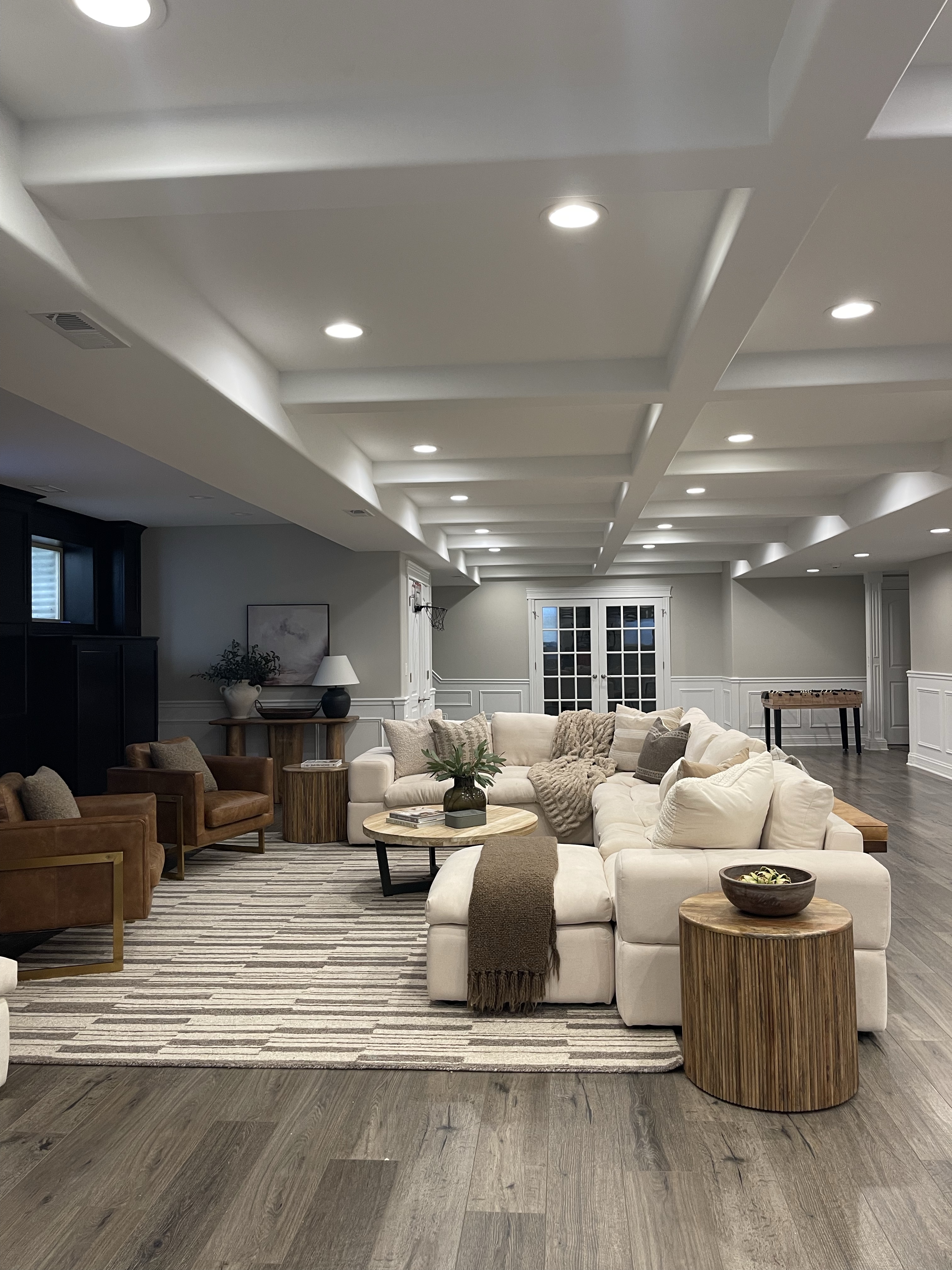 We are coming up on two year anniversary in our home and we are finally getting around to furnishing our Basement and making it feel cozy. We have a full finished basement with a kitchen, game room, changing room, laundry, bathroom, home gym and its own mudroom. While I am still working on finding the perfect pieces I wanted to show you the progress.